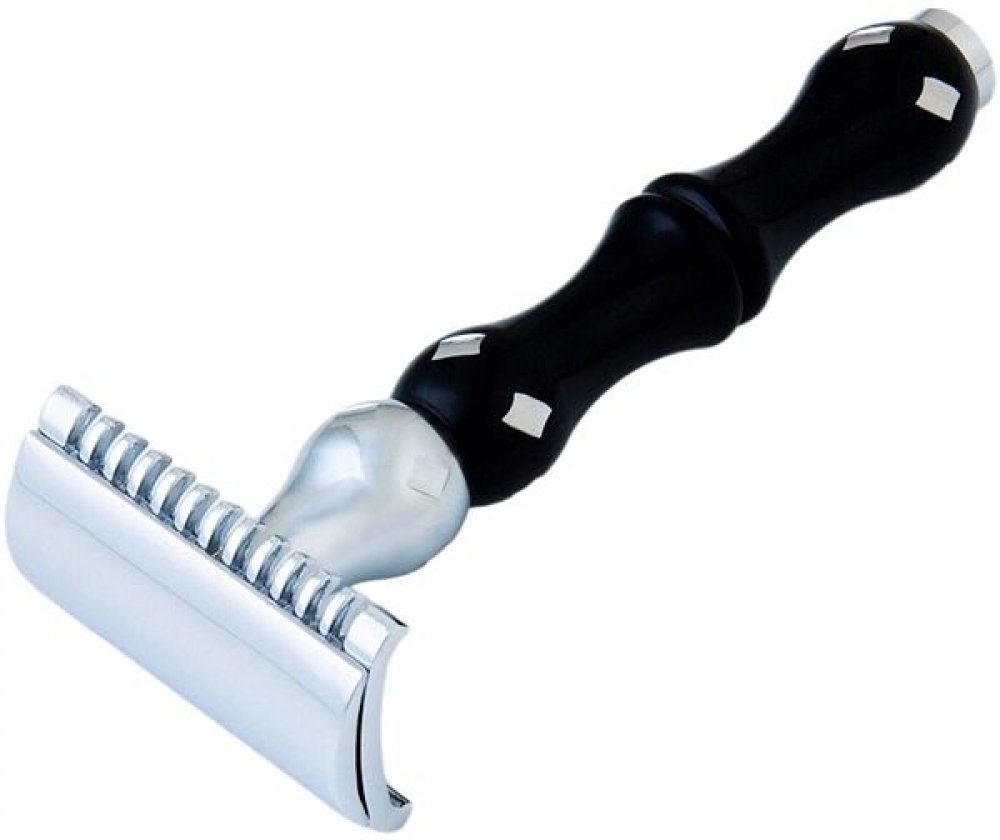 Elegantní holicí strojek na klasické žiletky. Díky propracovanému designu se strojek příjemně drží. Kovový a pochromovaný s protiskluzovým šroubovacím držadlem.