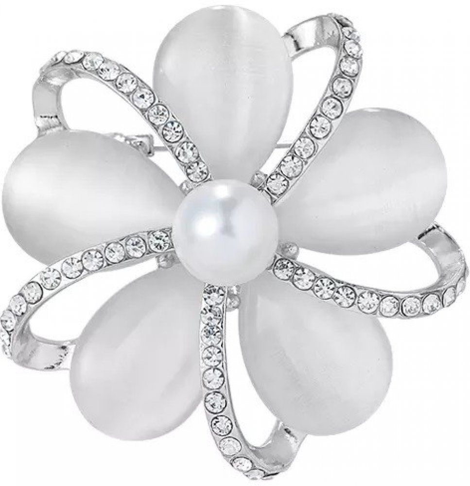Trendy brož ve tvaru květu, ozdobená krystaly. Krásně doplní a oživí vaše šaty nebo sako, ale i šálu nebo čepici. Brož se zapíná sponou ze zadní strany.