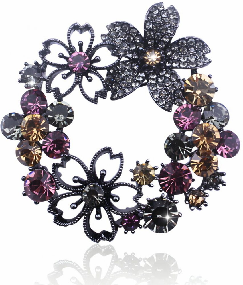 Brož ve tvaru věnečku z květů, ozdobená krystaly. Krásně doplní a oživí vaše šaty nebo sako, ale i šálu nebo čepici. Brož se zapíná sponou ze zadní strany.