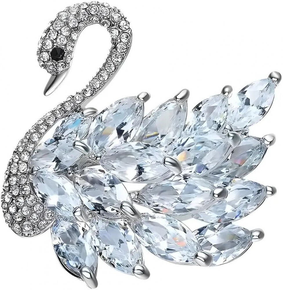 Bohatě zdobená brož ve tvaru labutě. Krásně doplní a oživí vaše šaty nebo sako, ale i čepici nebo šálu. Brož se zapíná sponou za zadní strany.