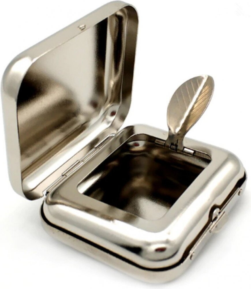 Cestovní popelník pro vášnivé kuřáky, kteří nechtějí znečišťovat své okolí. Po otevření se automaticky vyklopí držáček cigarety ve tvaru lístku.
