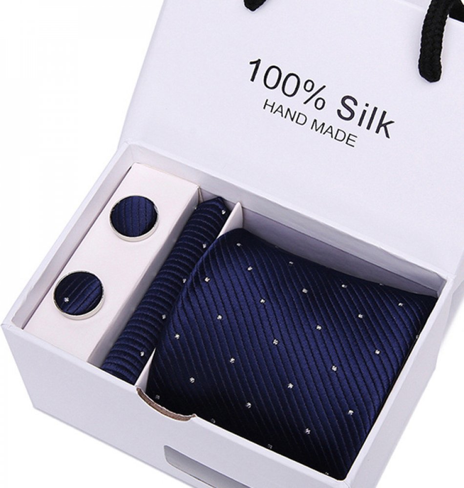 Manžetové knoflíčky s kapesníčkem a kravatou Gaira 7081-40 jsou ideálním dárkem pro elegantní muže. Sada obsahuje manžetové knoflíčky, kravatu a kapesníček ve stejném barevném i materiálovém provedení, díky čemuž dokonale doladí každý oblek. Vyrobené jsou ze 100% hedvábí. Manžetové knoflíčky jsou přitom vhodné ke košilím se zesílenými lemy rukávů. Manžetové knoflíčky s kapesníčkem a kravatou Gaira jistě potěší každého muže. Klíčové vlastnosti manžetových knoflíčků s kapesníčkem a kravatou Gaira 7081-40Manžetové knoflíčky s kapesníčkem a kravatou ideální pro elegantní mužeSada obsahuje manžetové knoflíčky, kravatu a kapesníček ve stejném barevném i materiálovém provedeníVyrobené jsou ze 100% hedvábíSouprava Gaira dokonale doladí každý oblekBarevné provedení: bílo-modré Rozměry kravaty:145 × 7,5 cm Rozměry kapesníčku:22 × 22 cm