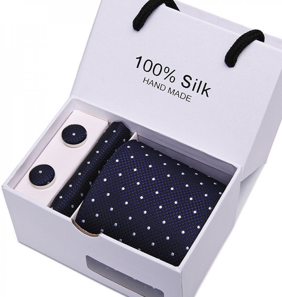 Manžetové knoflíčky s kapesníčkem a kravatou Gaira 7081-42 jsou ideálním dárkem pro elegantní muže. Sada obsahuje manžetové knoflíčky, kravatu a kapesníček ve stejném barevném i materiálovém provedení, díky čemuž dokonale doladí každý oblek. Vyrobené jsou ze 100% hedvábí. Manžetové knoflíčky jsou přitom vhodné ke košilím se zesílenými lemy rukávů. Manžetové knoflíčky s kapesníčkem a kravatou Gaira jistě potěší každého muže. Klíčové vlastnosti manžetových knoflíčků s kapesníčkem a kravatou Gaira 7081-42Manžetové knoflíčky s kapesníčkem a kravatou ideální pro elegantní mužeSada obsahuje manžetové knoflíčky, kravatu a kapesníček ve stejném barevném i materiálovém provedeníVyrobené jsou ze 100% hedvábíSouprava Gaira dokonale doladí každý oblekBarevné provedení: bílo-modré Rozměry kravaty:145 × 7,5 cm Rozměry kapesníčku:22 × 22 cm