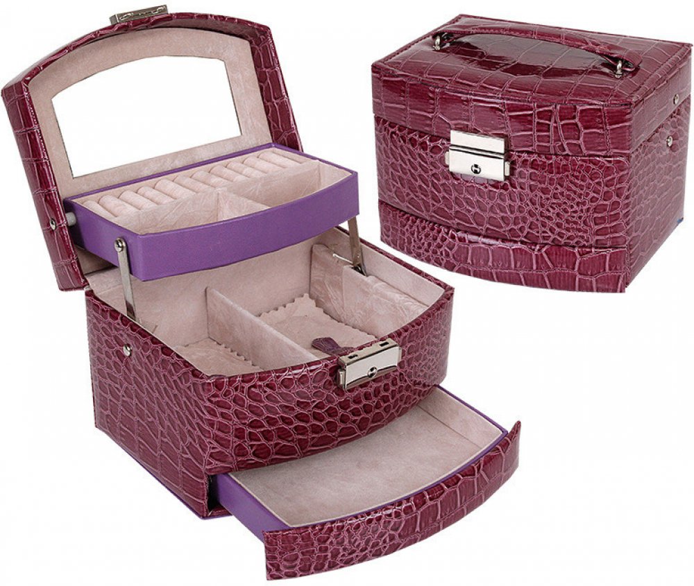 Šperkovnice Gaira® je perfektním řešením pro uložení vašich cenných klenotů a doplňků. Díky syntetické kůži je nejen stylová, ale i snadno udržovatelná. Možnost uzamknutí zajistí, že obsah zůstane v bezpečí a chráněn před neoprávněnými osobami. V zrcátku ihned zjistíte, který šperk dokonale podtrhne váš outfit. Nabízí celkem 3 patra, tudíž budete mít místo na uschování všech prstýnků, náramků i náhrdelníků. Zásadní vlastnosti šperkovnice Gaira 90024-21 Šperkovnice Gaira® je perfektním řešením pro uložení vašich cenností Je zhotovena ze syntetické kůže Šperkovnice se zrcadlem usnadní rozhodování o šperku Uzamykací mechanismus zabezpečuje obsah před nežádoucím přístupem S uchem na pohodlné přenášení Uvnitř se nachází 3 patra Vybavená je jednou zásuvkou Šperkovnice Gaira® má rozměry 13 × 15,5 × 12,5 cm (vך×h) Její barva je červená