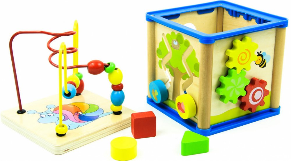 "Přinášíme vám Malou kostku, velkou zábavu! Tato vynikající hračka nabízí nekonečné možnosti zábavy a učení pro vaše děti. S různými tvary, barevným kolečkem a korálky na horské dráze rozvíjí jemnou motoriku a zručnost vašich malých průzkumníků.