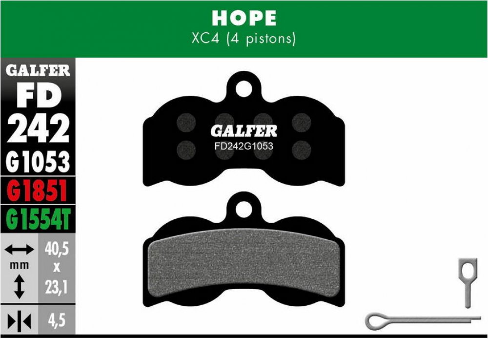 Brzdové destičky Galfer FD293 (STANDARD - černé) jsou vhodné pro brzdové systémy Shimano Deore a nižší, stejně jako pro brzdy Tektro a TRP. Tyto destičky jsou ideální volbou pro běžnou cyklistiku, protože poskytují spolehlivý a vyvážený brzdný výkon za rozumnou cenu.Směs STANDARD v černém provedení je navržena tak, aby nabízela dlouhou životnost, konzistentní brzdění za sucha i mokra a nízké opotřebení brzdových kotoučů. Brzdné destičky z této směsi jsou univerzální a vhodné pro široké spektrum cyklistických disciplín, od rekreačních jízd až po každodenní dojíždění.Pokud hledáte univerzální, odolné a cenově dostupné řešení pro své brzdy Shimano Deore, Tektro nebo TRP, Galfer FD293 (STANDARD - černé) jsou skvělou volbou. Tyto destičky zajistí spolehlivé brzdění a pohodlí při každé jízdě.Kompatibilita s třmenyShimanoShimanoShimanoShimanoTektroTektroTektroTRPBR-MT200BR-M465BR-MT400BR-TX805DoradoM501HD-T520HylexBR-M355BR-M475BR-MT410BR-MT500DracoHD-M352T290HY/RDBR-M375BR-M485BR-C501BR-UR300GeminiM350MD-M500Dash SportBR-M395BR-M486BR-M416AHDC 300M351M280BR-M415BR-M495BR-M4050MotaM330MD-C40BR-M416BR-M525BR-M3050-FOrionM300HD-M520BR-M445BR-M575BR-M3050-RM521M301BR-M446BR-T615BR-M365M510HD-M290BR-M447BR-T675BR-M315M500M291Varianty směsiČerná (standard)Červená (mokro)Fialová (elektrokolo)Zelená (závodní)Modrá (silniční) Jakou směs vybrat? Černá (Performance, dříve Standard)univerzální použití do všech podmínek, tvrdší směs, nejdelší životnostXC, DH, Enduro, Elektrokola, Gravel, SilniceČervená (Advanced)extrémní podmínky (do mokra, bahna), stálý brzdný účinek, měkká směs (rychleji se opotřebují)XC, DH, Enduro, Elektrokola, GravelZelená (Pro)závodní, nemusí se zajíždět, do extrémních podmínek, snesou i vyšší teploty bez ztráty brzdného účinkuXC, DH, Enduro, SilniceModrá (Road)směs vytvořená pro silniční kola do všech podmínekSilniceFialová (E-bikes)směs vytvořená pro elektrokola, zvládá vysoké teploty za tichého chodu, skvělá životnostElektrokolaStále si nejste jisti výběrem?❓ Nevíte si rady s výběrem? Navštivte naše prodejny po celé ČR, kde vám rádi poradíme, nebo nás kontaktujte na info@bikemax.cz. Jsme největší síť obchodů s koly a elektrokoly v České republice, kde vám pomůžeme s nákupem, výběrem i montáží! ♀️Galfer – Specialista na brzdové systémy s tradicí a inovacíSpolečnost Galfer je uznávaným lídrem ve výrobě brzdových systémů, který již více než 70 let spojuje tradici, inovace a špičkovou kvalitu. Založená ve Španělsku, rychle si získala mezinárodní uznání díky své specializaci na produkty, které splňují nejvyšší standardy bezpečnosti a výkonu. Hlavní doménou značky jsou brzdové destičky, které jsou navrženy nejen pro jízdní kola, ale i pro motocykly a další vozidla. Brzdové destičky Galfer jsou symbolem preciznosti, dlouhé životnosti a maximálního brzdného účinku. Díky využití moderních technologií a kvalitních materiálů nabízí tyto destičky vynikající výkon za jakýchkoli podmínek – ať už na mokré silnici, náročném terénu nebo na závodní dráze. Kromě toho se produkty Galfer vyznačují tichým provozem a dlouhou životností, což ocení nejen hobby jezdci, ale také profesionální sportovci. Společnost dbá na ekologický přístup a při výrobě nepoužívá toxické látky, čímž přispívá k ochraně životního prostředí. Díky úzké spolupráci s profesionálními sportovními týmy Galfer neustále testuje a vylepšuje své produkty, aby zajistil maximální spokojenost svých zákazníků. Pokud hledáte spolehlivost, výkon a kvalitu, produkty Galfer jsou tou správnou volbou. S brzdovými destičkami Galfer získáte jistotu a bezpečí při každé jízdě.Destičky GalferPro elektrokolaPro ShimanoPro SramPro CampagnoloPro TektroPro TRP