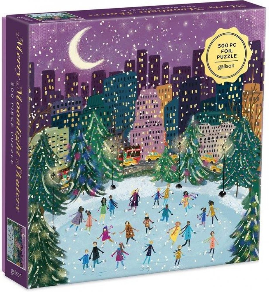 500 dílné puzzle obsahuje okouzlující a barevné ilustrace vánočního bruslení za svitu Měsíce. Puzzle je baleno v pevných krabicích s matným povrchem.