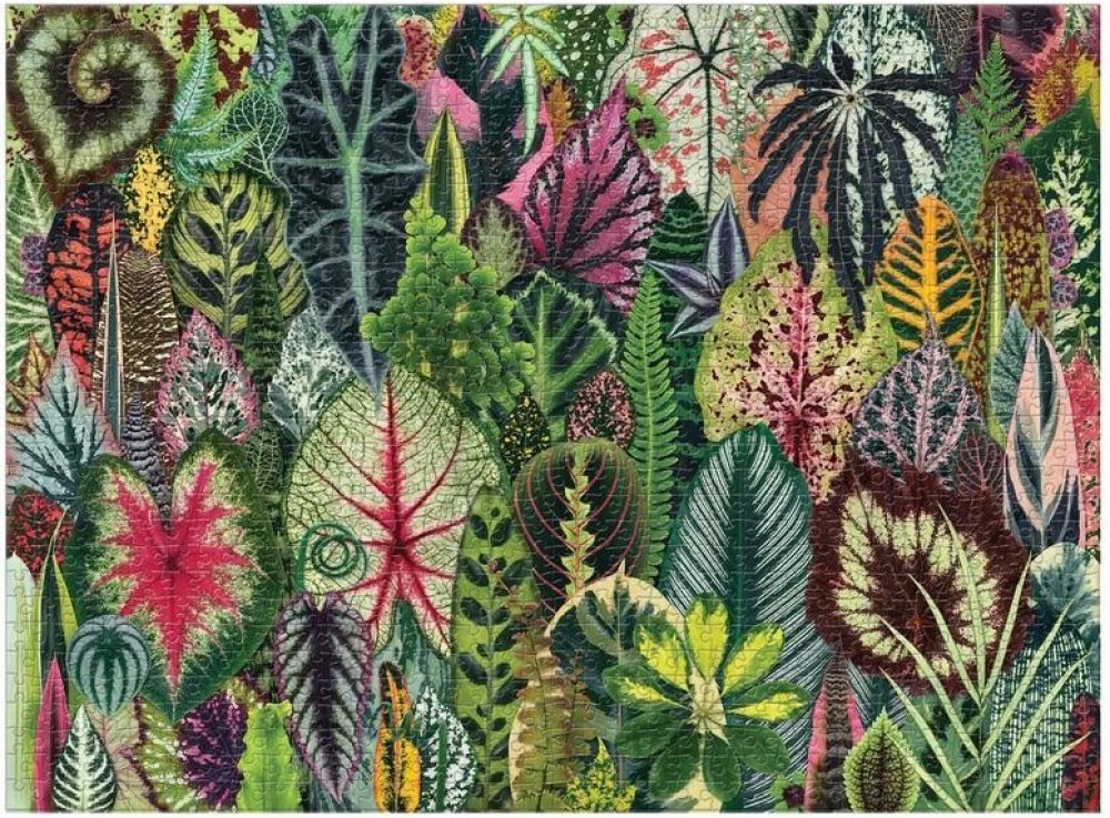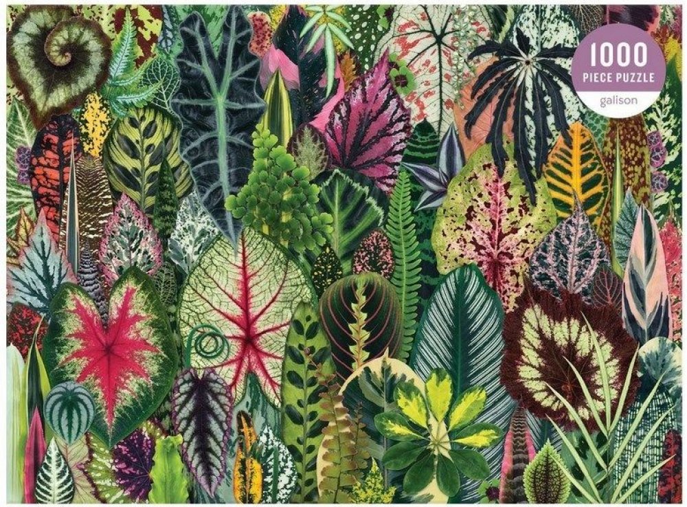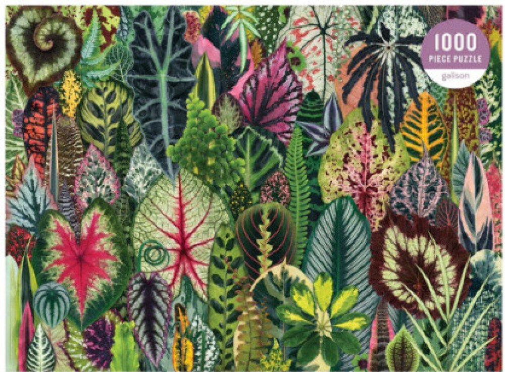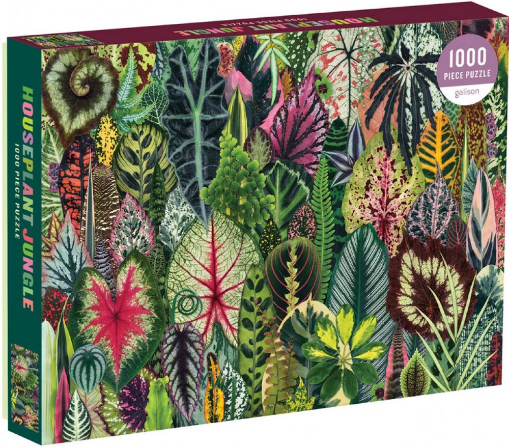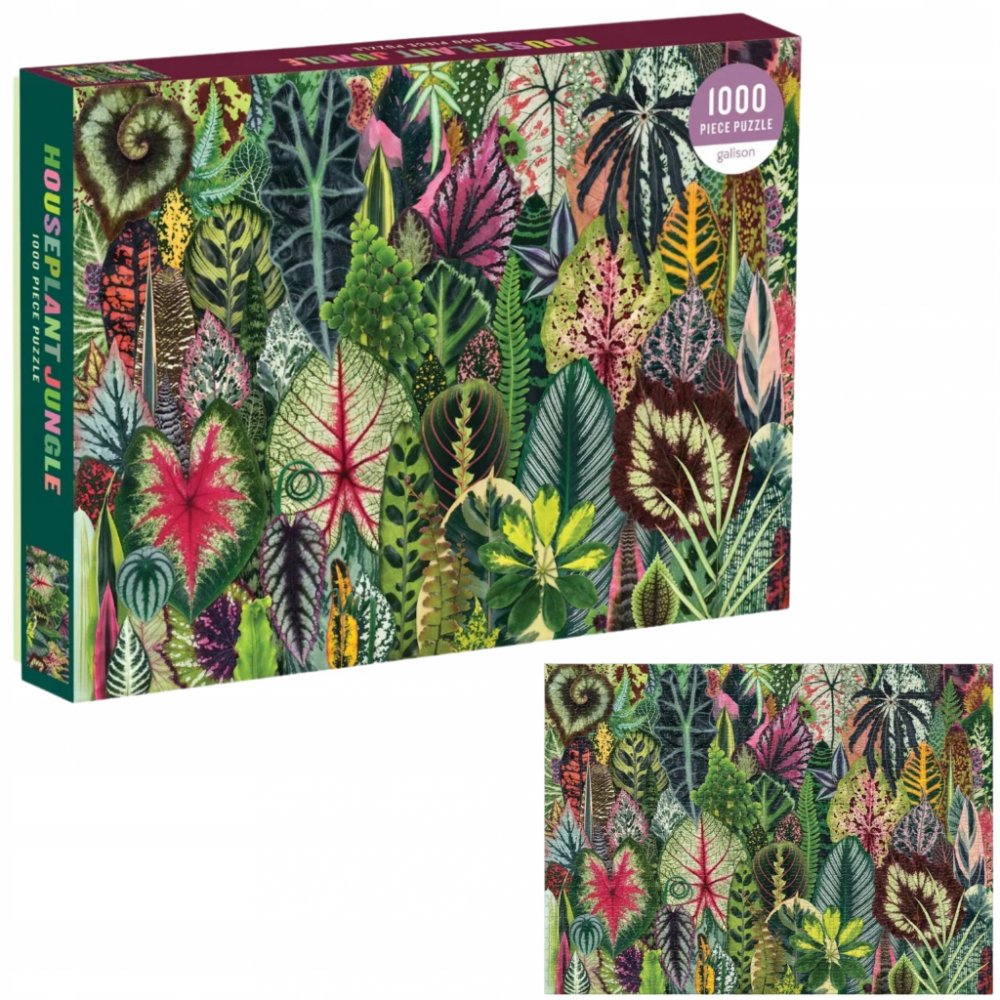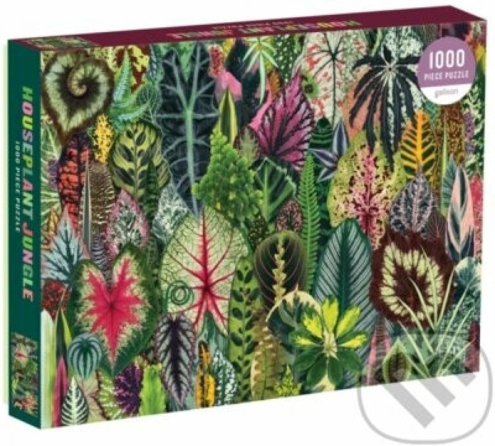 Puzzle od amerického výrobce Galison v obdélníkovém tvaru s názvem Džungle pokojových rostlin. Na motivu je zachyceno velké množtví nádherných listů pokojových květin.