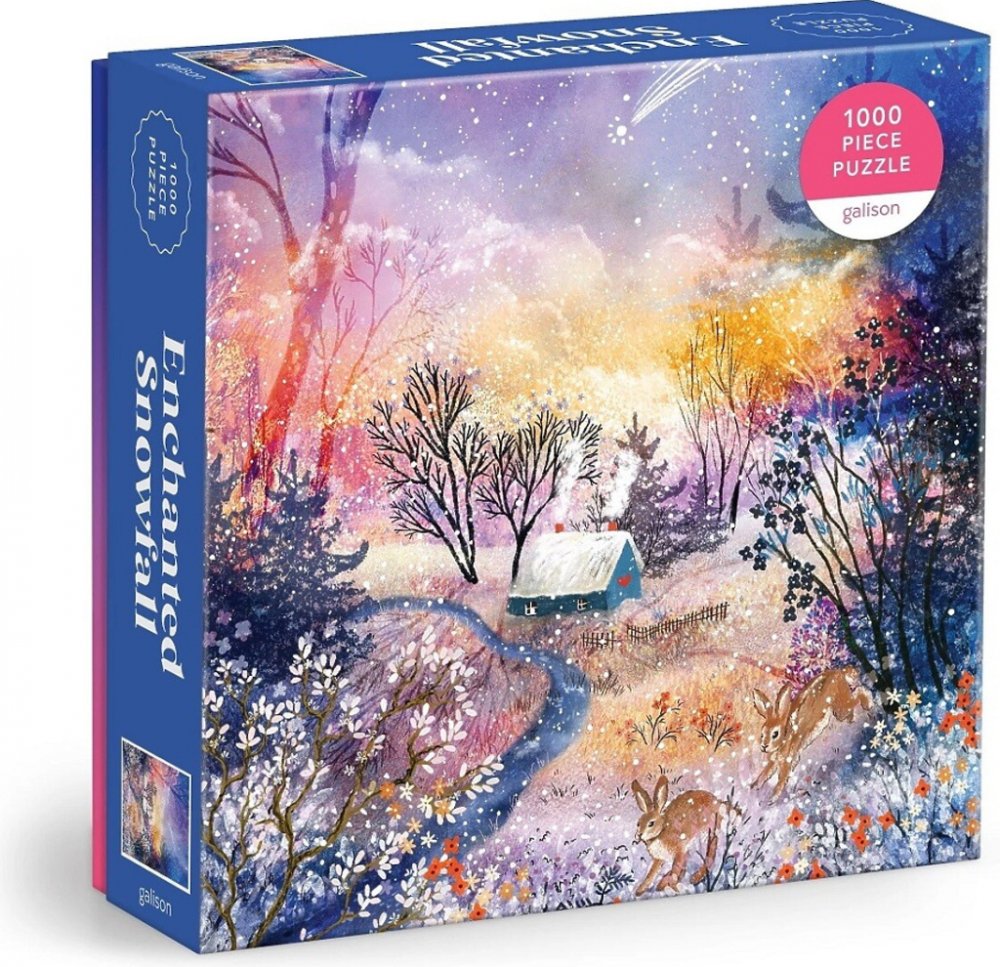 Kouzelná zasněžená krajina 1000 dílkové puzzle od firmy Galison zobrazuje zasněženou zimní krajinu osvětlenou nadpřirozenou, hvězdnou oblohou. Toto puzzle představuje nádhernou hvězdnou oblohu nad malou chaloupkou obklopenou krásou zimy a samozřejmě kouzlem sněhu, vše v živých barvách. Autorkou obrázku je ilustrátorka Laivi Põder. Její tvorba je známá pro klidné a snové atmosféry.Puzzle jsou vyrob...