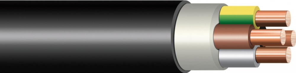 Instalační kabel CYKY je určen pro pevné uložení ve vnitřních a venkovních prostorách, v zemi a v betonu. Kabel má 5 žil s průřezem 2,5 mm² a barevné značení J (C). Černý plášť je vyroben z PVC.