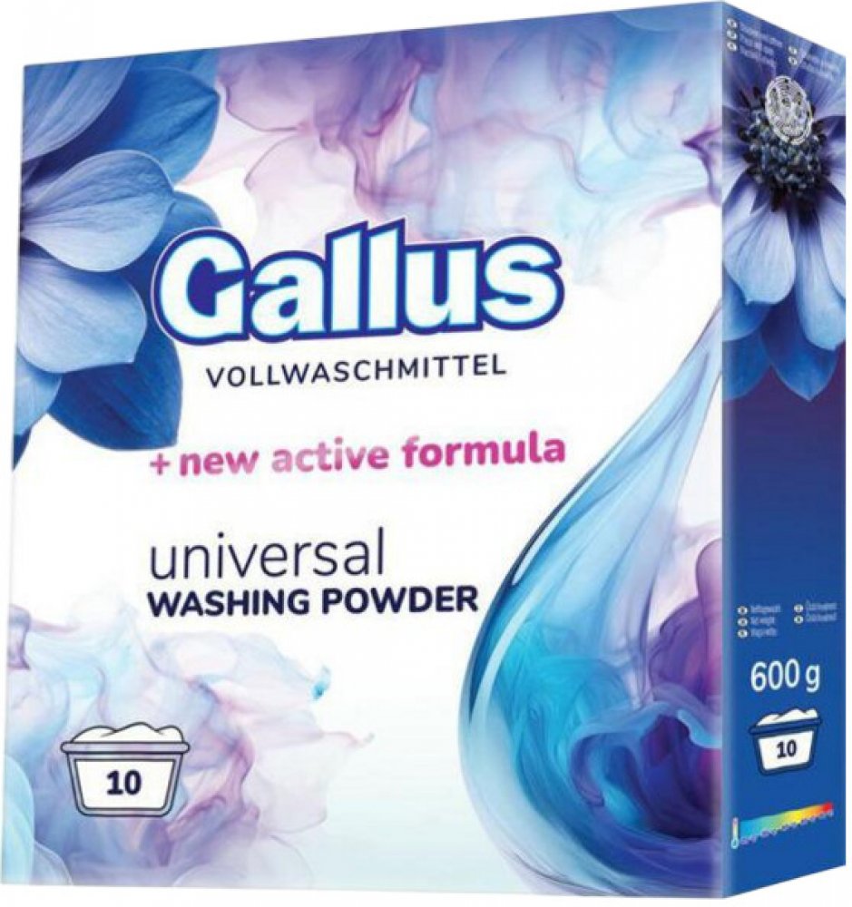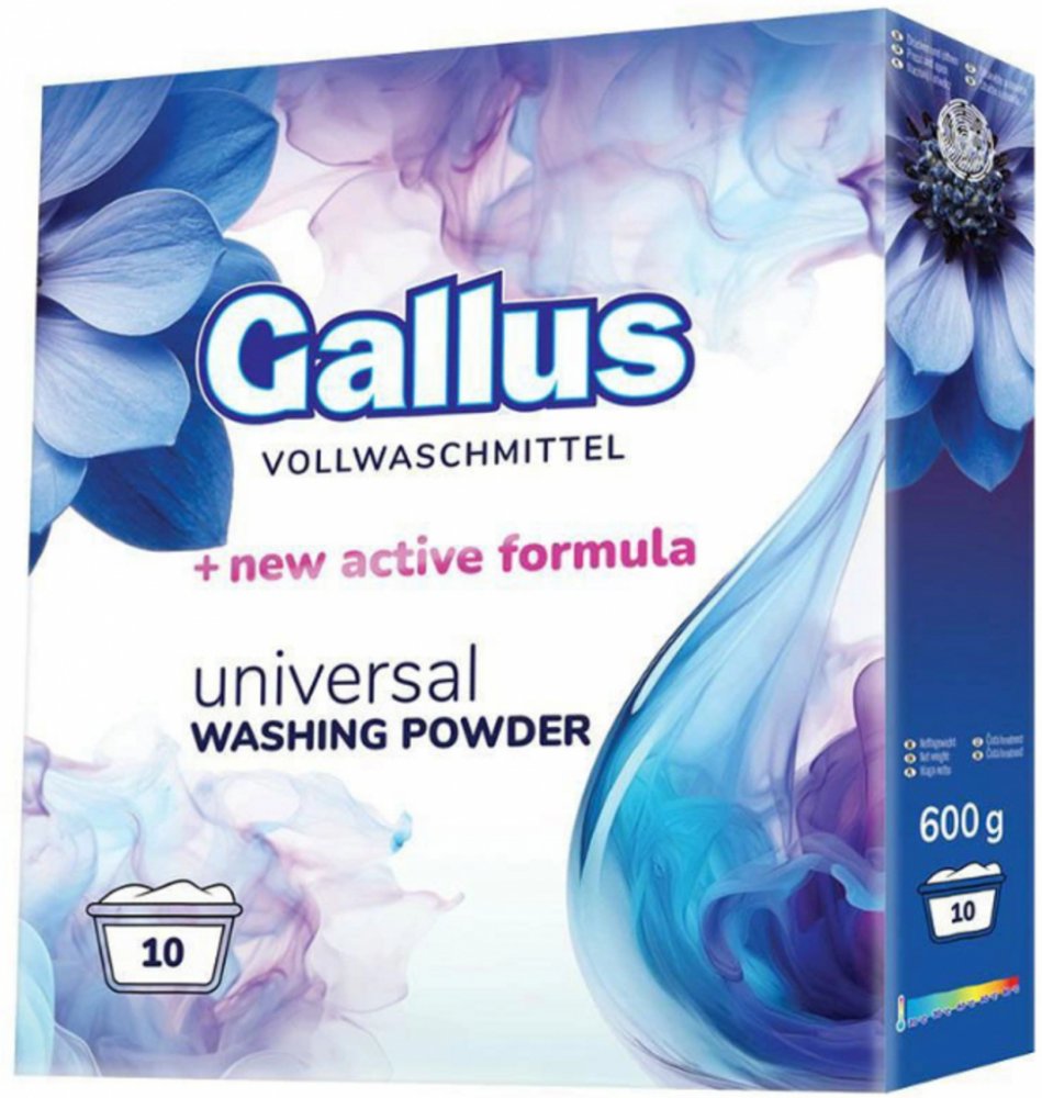 Gallus Universal je vysoce účinný prací prášek navržený pro komplexní péči o vaše prádlo. Díky své aktivní formuli proniká hluboko do vláken tkanin, účinně odstraňuje i odolné skvrny a zanechává prádlo svěží a čisté. Je vhodný pro praní bílého i barevného prádla při teplotách od 30 °C do 95 °C. Klíčové vlastnosti: Univerzální použití ideální pro všechny typy prádla, včetně bílého a barevného, s vý...