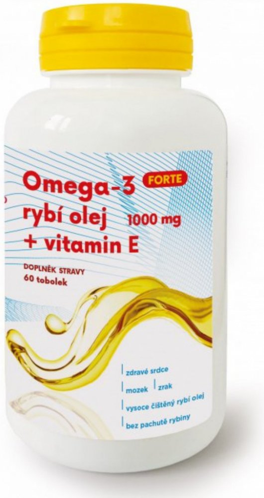 Omega-3 rybí olej Je bohatým zdrojem Omega-3 mastných kyselin EPA a DHA důležitých pro lidské zdraví a četné tělesné funkce. Nenasycené Omega-3 mastné kyseliny jsou nezbytnou a nutnou složkou stravy. Vysoce čištěný olej z ryb s krátkým životním cyklem (nízké riziko kumulace těžkých kovů), lovených na volném moři v ekologicky čistých oblastech jižního Pacifiku. S přírodní formou vitaminu E ve formě D-alfa tokoferolu pro zachování kvality a čerstvosti oleje po dlouhou dobu. Bez rybí pachutě. Snadno polykatelné tobolky. Dávkování 1 - 3 tobolky denně. Příznivého účinku je dosaženo při denním příjmu 250 mg EPA a DHA. Fakta / rady Nevhodné pro děti do 3 let. Nepřekračujte doporučené denní dávkování. Doplněk stravy není určen jako náhrada pestré a vyvážené stravy. Skladovat v suchu a temnu při teplotě do 25°C. Kontraindikace Přípravek nepoužívejte při známé přecitlivělosti na některou složku přípravku. Složení přípravku Složení 1 tobolky: rybí olej 1000mg ( z toho EPA 180 mg, DHA 120mg), želatina, zvlhčující látka (glycerin), D-alfa tokoferol (Vitamin E 5mg) Obsah 60 tobolek Hmotnost obsahu Balení 60 tobolek: 82,5g Skladování Skladujte v suchu, při teplotě do 25°C.