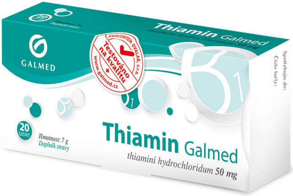 Thiamin Galmed tbl 30x50mg je důležitý pro normální činnost nervového systému, svalů a srdce a současně pro činnost některých enzymů, uplatňuje se při štěpení a zužitkování cukrů a škrobů, které dodávají tělu energii.