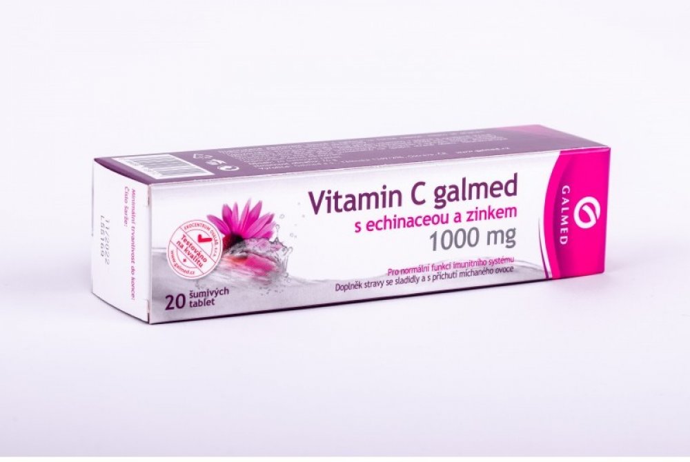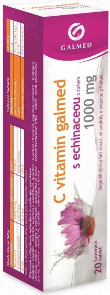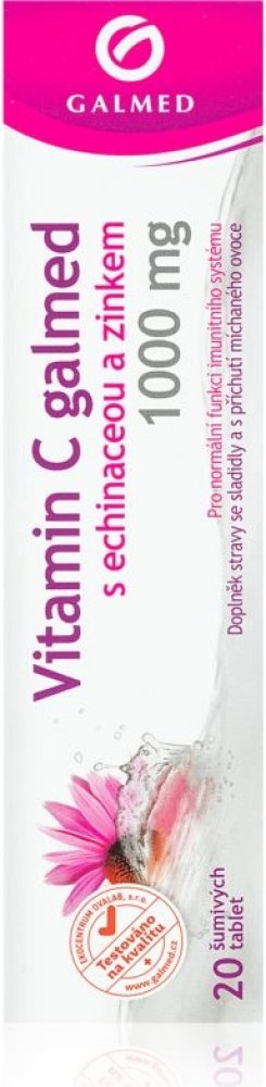 GALMED Vitamin C 1000 mg s echinaceou 20 šumivých tablet Vitamín C 1000mg s echinaceou a zinkem ve formě šumivé tablety. Doplněk stravy pro normální funkci imunitního systému. Bez lepku a alergenů.
