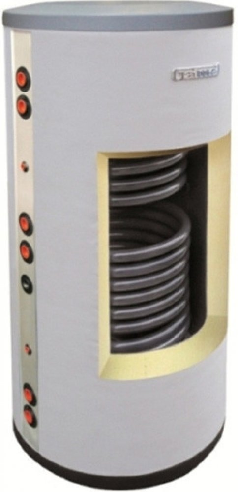 bojler se dvěmi výměníky s použitím pro ohřev vody pomíc ústředního vytápění kotlem, nebo pomocí sluneční energie