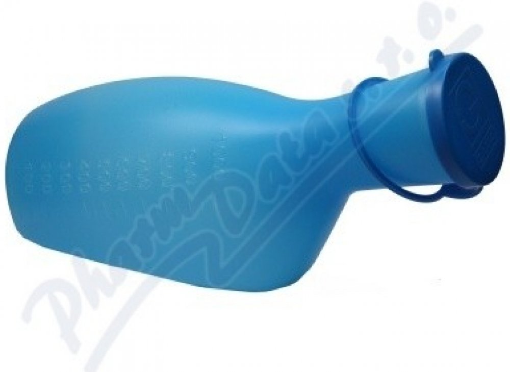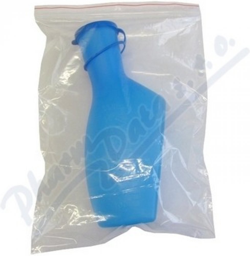 Láhev na moč s uzávěrem v PE sáčku určená pro muže je zdravotnický prostředek, vhodný pro odběr moči nebo pro lidi se sníženou pohyblivostí. Nádoba je vyrobena z HDPE materiálu v různých barvách a má objem 1000 ml. Láhev je také doplněna stupnicí po 50 ml a uzávěrem z LDPE o průměru 54 mm.Parametry nádoby na moč:Kapacita 1000 ml pro odběr plných vzorků.Odolná konstrukce z HDPE plastu.Měřící značky každých 50 ml.Šroubovací uzávěr LDPE o průměru 54 mm pro bezpečné uzavření.Balení obsahuje láhev v modré barvě.