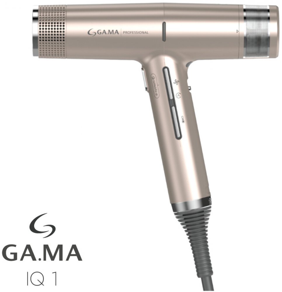 Fén na vlasy Gama IQ je díky perfektnímu mixu jeho vlastností nejinteligentnější fén na současném trhu. Vysoušeč vlasů Gama IQ s inovativním vzhledem a zcela novým designem, mimořádně ovladatelný, který zaručuje maximální pohodlí. Jeho kompaktní rozměry jsou oproti současným vysoušečům vlasů poloviční a usnadňují styling. Zároveň se tím zmenšuje prostor potřebný pro jeho uložení nebo při nošení s sebou. Jeho zlatorůžová barva je elegantní detail výkonného přístroje.