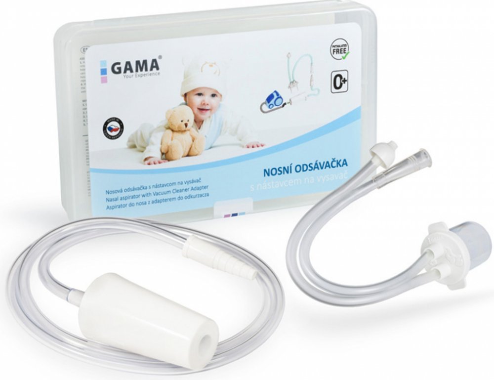 Odsávání pomocí vysavače: nástavec odsávačky připojíme na vysavač a hadičku s bezpečnostní nosní koncovkou přiložíme k nosní dírce dítěte. Po zapnutí vysavače odsajeme hlen.