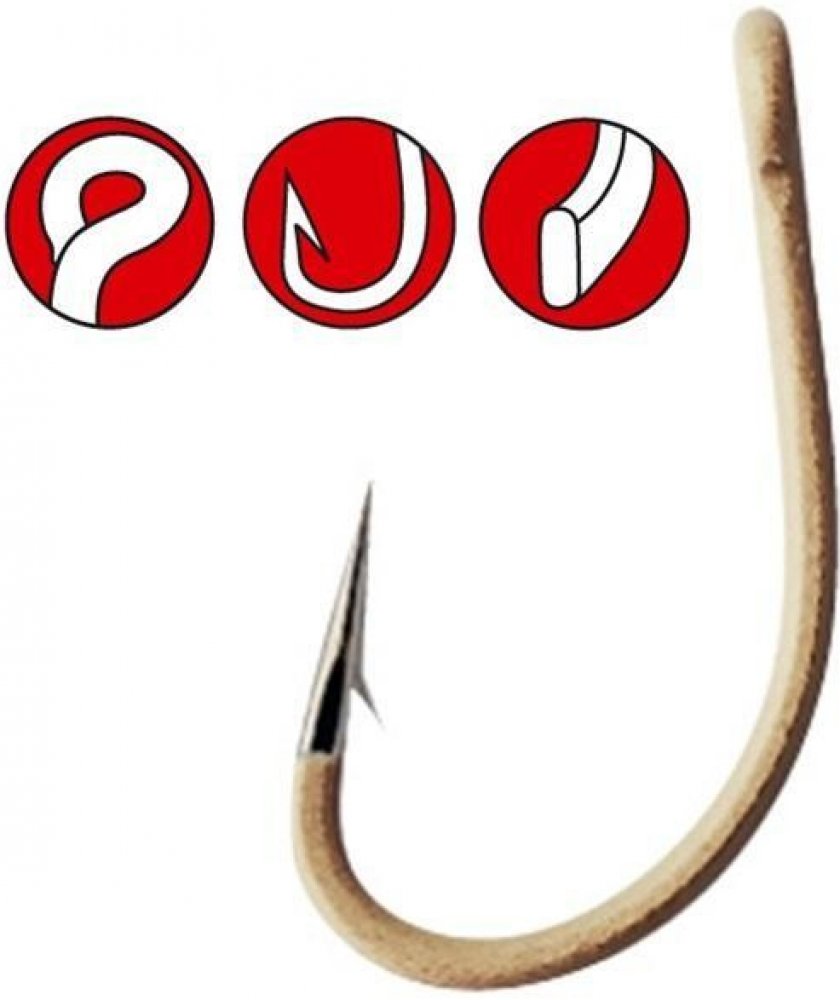 Velmi ostrý háček s hrotem otočeným dovnitř. Výborný v kombinaci se smršťovacími hadičkami.