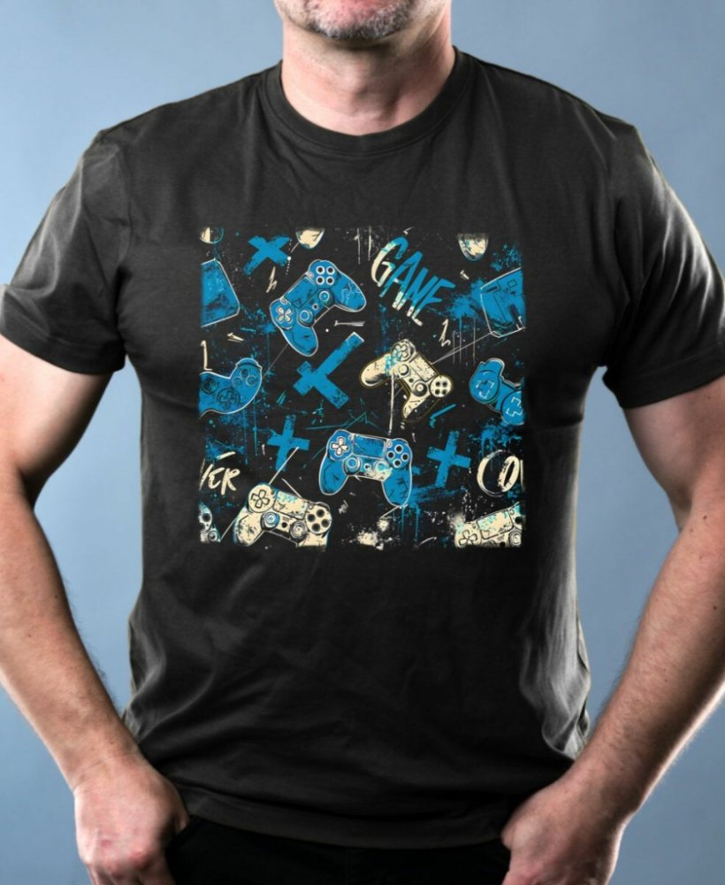 Game Overlord. Joysticky, gamepady, tlačítka a nápisy – toto není jen vzor, to je manifest herní posedlosti! Ideální pro každého, kdo tráví více času v digitálních světech než v realitě. Tričko, mikina, kšiltovka, zástěra, tílko, hrnek, půllitr, plechový hrneček