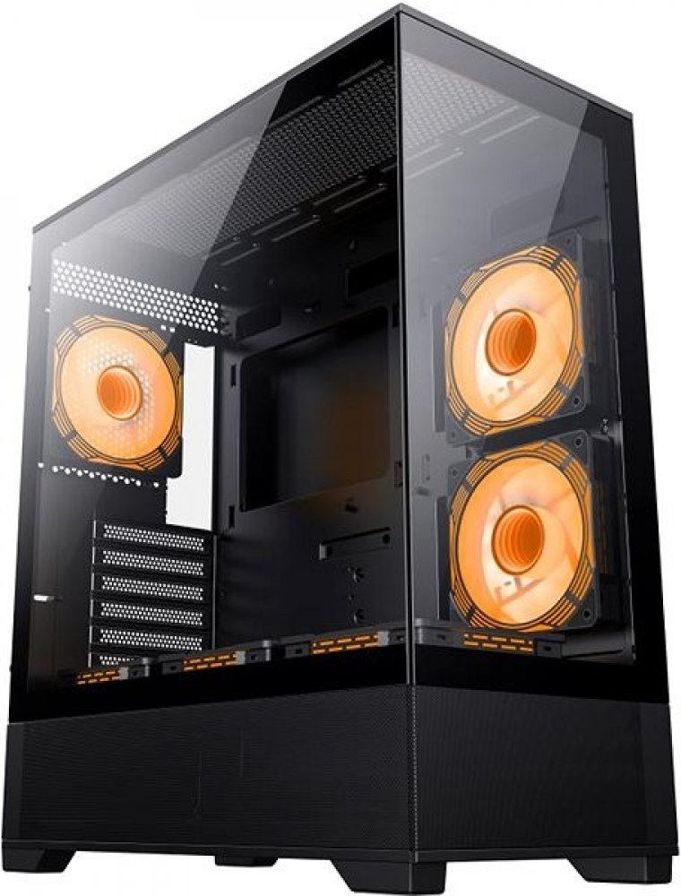 ATX, mATX (Micro ATX), mITX (Mini ITX) a eATX (Extended ATX), 2× 3,5", 2× 2,5", USB 3.2 Gen 1, usb-c, sluchátka/mikrofon a USB 3.2 Gen 2, 6x120mm ARGB, max. výška chladiče 165 mm, max. délka grafické karty 410 mm, bez zdroje, bočnice temperované sklo (VISTAAB)
