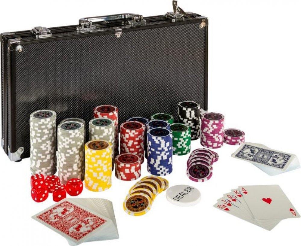 - 300 laserových žetonů s efektním hologramem. Hmotnost jednoho žetonu 12 g (profesionální pokerový žeton s kovovým jádrem)