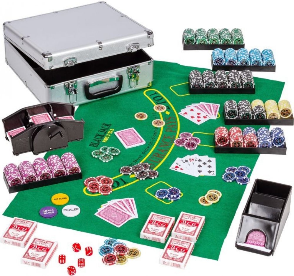 Díky kvalitě žetonu máte dojem, že se nacházíte v kasinu. Obzvláště ambiciózní hráči ocení kvalitu produktu, pokud jde o stacking (stohování) či shuffeln (míchání). Součástí luxusní sady jako speciální doplněk je míchačka karet, rozdavač karet a hrací podložka. V sadě je tedy zahrnuto vše, co je nutné pro úspěšný poker. Díky robustnímu hliníkovému kufříku s vložkou je vaše pokerová sada vždy dobře...