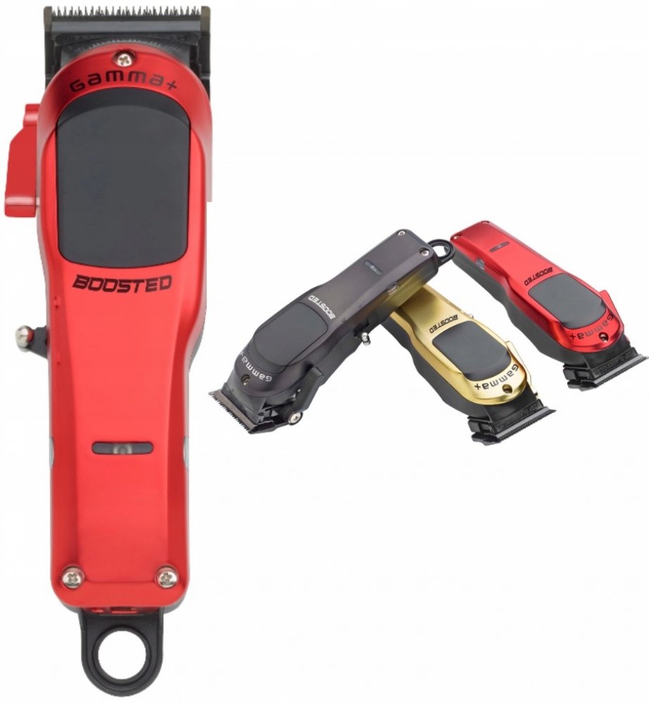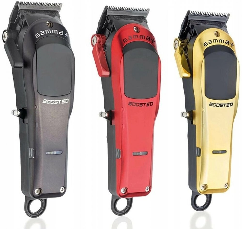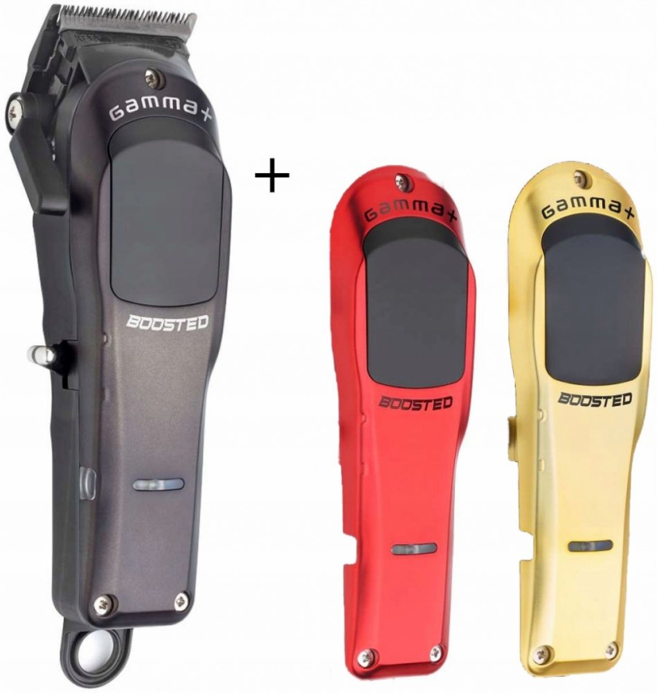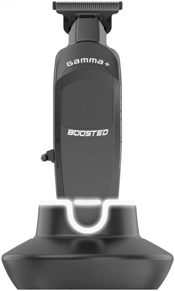 Součástí balení je pevná protiskluzová nabíjecí základna s inovativním designem a LED osvětlením. Plně nabitý strojek je za 2 hodiny a následná doba provozu je také 2 hodiny. Stav nabití baterie ukazují tři LED diody na těle strojku. Konturka Gamma+ Boosted má lehké ergonomické tělo, díky kterému je práce s ním rychlá a jednoduchá. V balení se dále nachází háček pro zavěšení strojky, který je možné v případě potřeby přišroubovat a 3 výměnné kryty v černé, červené a zlaté barvě. Design strojku tak můžete ladit k vaší spokojenosti. Konturovací strojek Gamma Piu Boosted trimmer nabízí bezkonkurenční uživatelský zážitek a také spolehlivý výkon hodný každého barber shopu, holičství či kadeřnictví.