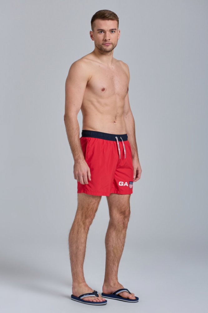 Pánské šortky na koupání s délkou nohavic do půli stehen. Klasická výška sedu, kontrastní provedení pružného, variabilně stahovatelného pasu na tkaničku, jenž je v jedinečném souladu se silikonovým brandingem nad spodním lemem levé nohavice. Dvě boční šikmé kapsy, zadní otvory, které zamezují naplnění plavek vzduchem při skoku do vody, podšívka ze síťoviny. Kvalitní materiálové složení je odolné vůči prodření, stálobarevné, rychloschnoucí a na omak příjemně měkké. Pohodlný artikl, bez kterého se parné letní dny u vody neobejdou.