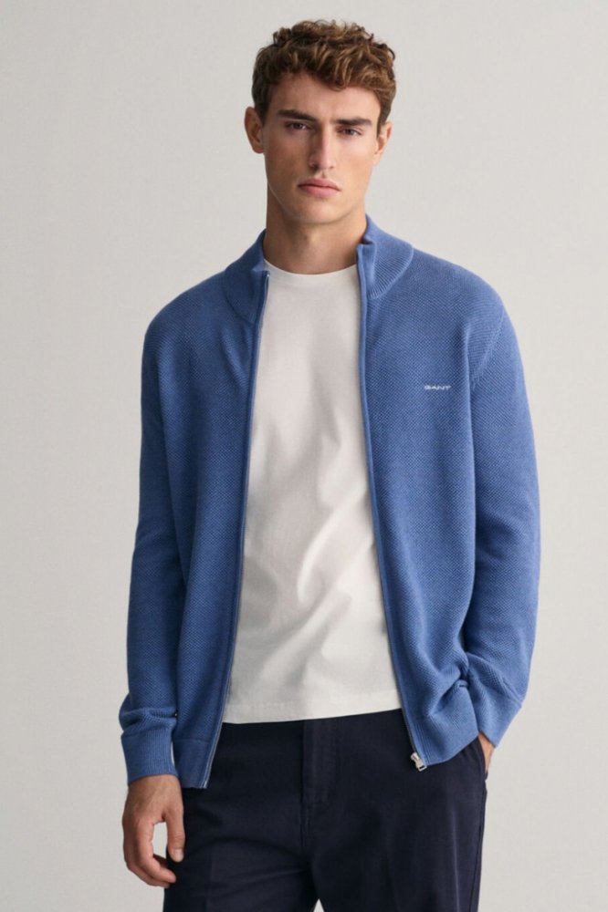 Celopropínací pánský svetr s vyšitým nápisem brandu na hrudi, jenž svým minimalistickým provedení elegantně koresponduje s nadčasovým designem artiklu. Rovný, dokonale padnoucí střih doplňují praktické náplety v pase i na rukávech. Materiálové složení tvoří na omak příjemně měkký piké úplet z bavlněného vlákna prémiové kvality, které je zárukou vysoce komfortního pocitu v průběhu nošení. Všestranně kombinovatelný kousek, který se stane nenahraditelnou součástí ležérně-elegantního šatníku.