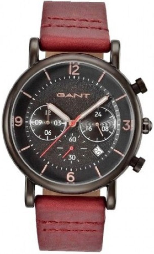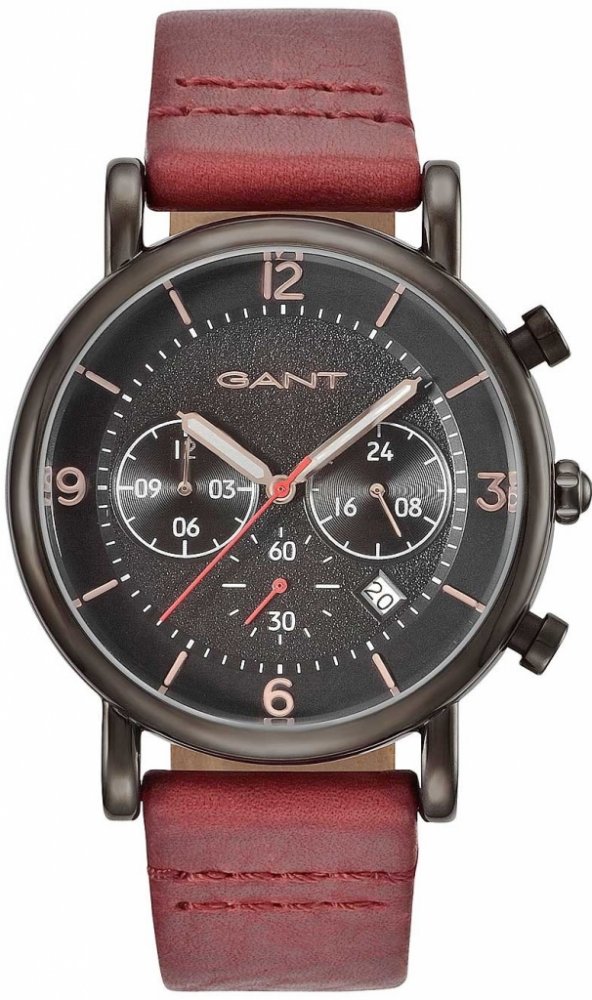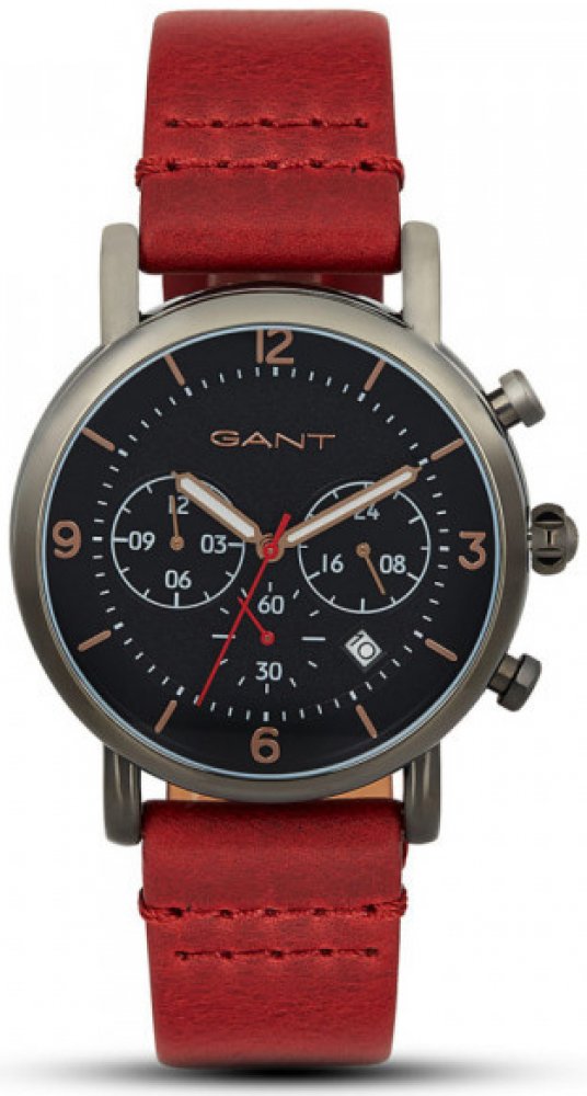 Pánské hodinky GANT Springfield GT007002 s kulatým ocelovým pouzdrem s PVD povlakem v černé barvě a s červeným koženým řemínkem. Jedná se o elegantní model, který zaujme každého muže se zájmem o moderní a sportovní hodinky. Hodinky mají černý ciferník, který disponuje třemi subciferníky zobrazující stopky a 24 hodinový ciferník.
