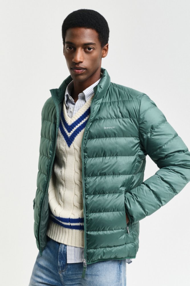 Pánská odlehčená péřová bunda rovného střihu se zapínáním na dvojcestným zip do stojáčku a pružným zakončením pasu i rukávů. Jednobarevný, elegantní design je velmi vkusně doplněn matným leskem, unikátně zbarvené, prošívané tkaniny. Dvě prostorné boční kapsy jsou samozřejmostí stejně jako minimalistický branding na hrudi. Bunda je vyplněna kachním peřím v poměru 90/10 a spolu s vodoodpudivým povrchovým materiál spolehlivě udržuje teplo a brání profouknutí. Vysoce komfortní, stylově vypadající kousek ideální do proměnlivého jarního počasí.