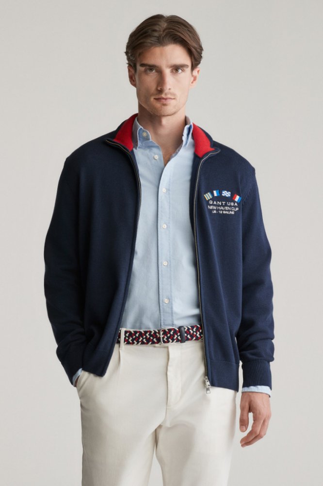 Pánský celopropínací svetr se zapínáním na dvojcestný zip do kontrastně podbarveného stojáčku, který elegantně koresponduje s provedením unikátní grafiky vyšité na hrudi. Rovný, dokonale padnoucí střih je doplněn praktickými náplety v pase i na rukávech. Materiálové složení hladkého úpletu je tvořeno příjemně měkkým, hřejivým, avšak prodyšným bavlněným vláknem, které představuje záruku vysoce komfortního pocitu v průběhu nošení. Stylově vypadající artikl, který ležérním outfitům dodá nápaditý vzhled.