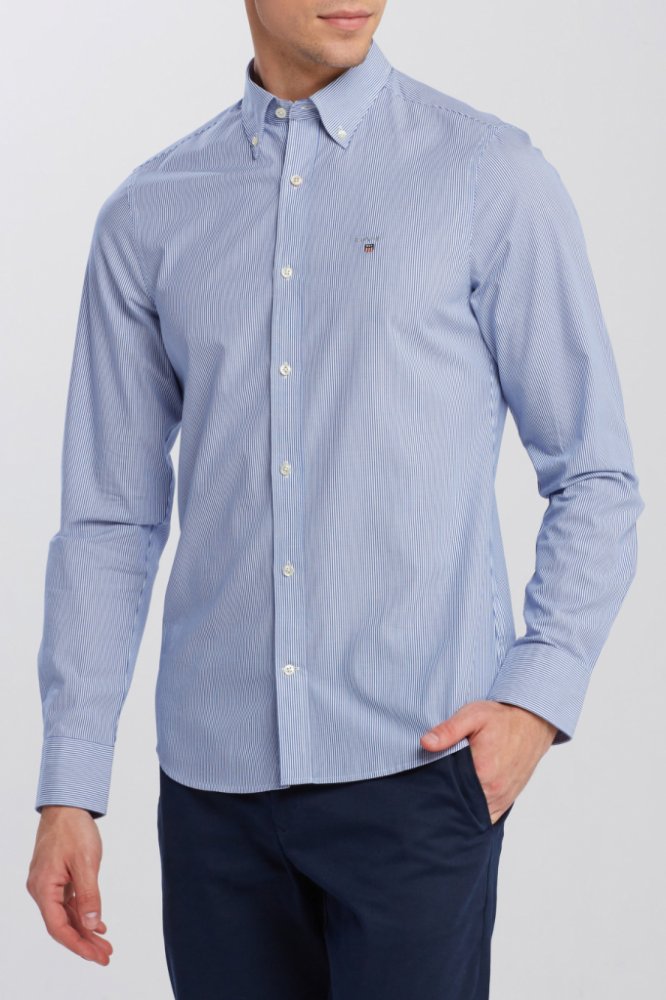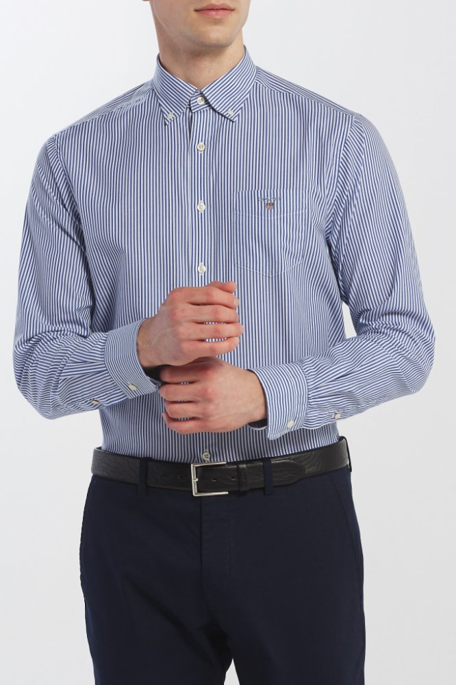 Pánská pruhovaná košile s dlouhým rukávem v klasickém střihu. Ikonický button down límec se třemi knoflíky, Gant logo vyšité na kapse na hrudi. Poutko na zádech, sámek pro maximalizaci komfortu při pohybu. Materiálové složení je tvořeno jemnou bavlněnou tkaninou prémiové kvality, která je lehká, prodyšná a velmi příjemná na omak. Nestárnoucí evergreen značky, který se díky svému univerzálnímu využ...