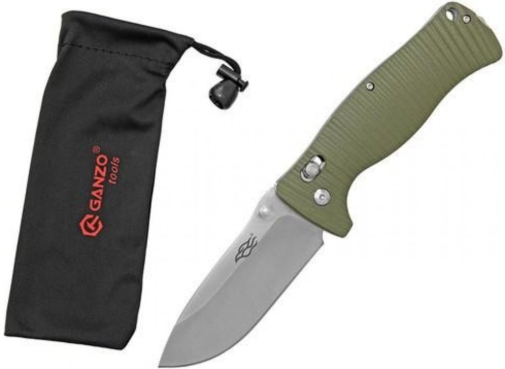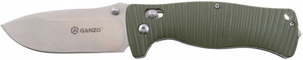 Robustní zavírací nůž Ganzo Čepel z oceli 440C s klínovým výbrusem Otevírání pomocí oboustranného kolíčku Pojistka axis lock Střenky z G10 Klip na kapsu nebo kalhoty přemístitelný na obě strany Hrot na konci rukojeti