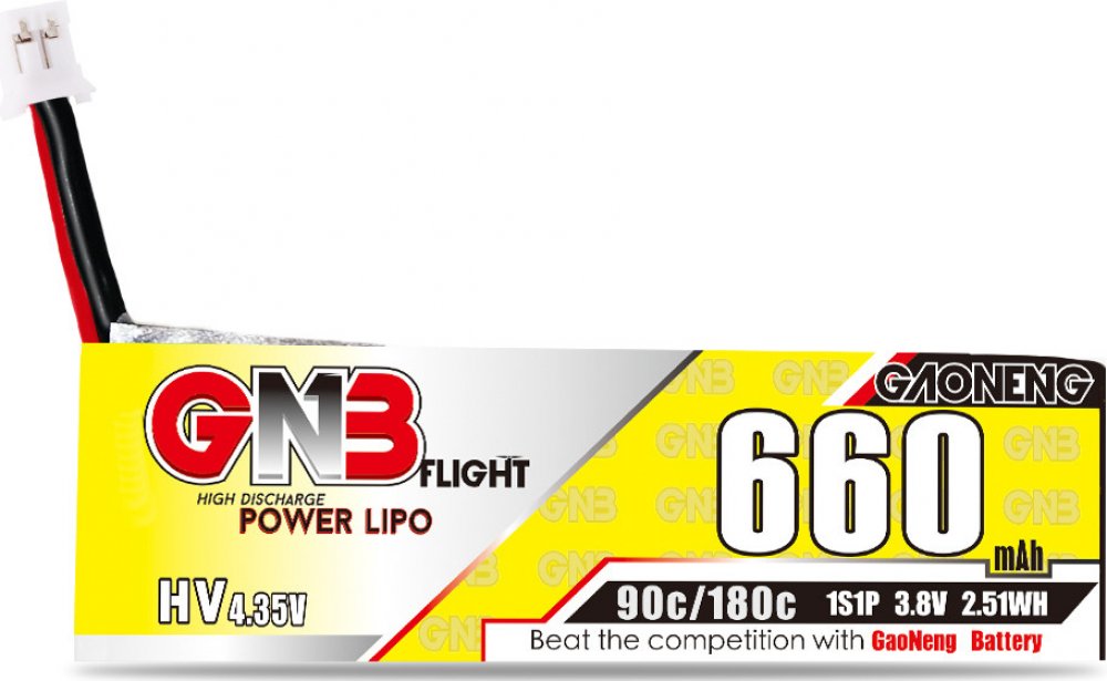 GAONENG GNB LiHV Battery 1S 3.8V 660mAh 90C PH2.0 Cabled