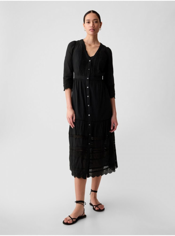 Barva: černáStřih: áčkovýVýstřih: véčkovýZapínání: knoflíkyRukáv: tříčtvrtečníDélka: polodlouháMateriál: 100 % bavlna