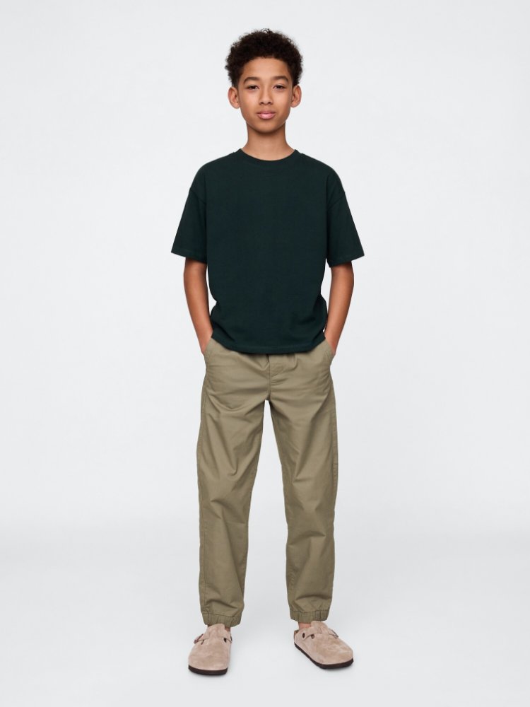 Chlapecké kalhoty v jogger stylu jsou navržené pro každodenní pohodlí a volnost pohybu.Ušité z měkkého a pružného bavlněného kepru, který je příjemný na dotek a zároveň dostatečně odolný pro dětské aktivity.Elastický pas s funkční šňůrkou usnadňuje oblékání a umožňuje přizpůsobení podle potřeby.Kalhoty mají přední šikmé kapsy, zadní kapsy a pružné lemy na nohavicích, které zajišťují pohodlí a sportovní vzhled.Součást programu Washwell™, který snižuje spotřebu vody při výrobě.Tento produkt vznikl v továrně zapojené do iniciativ RISE a P.A.C.E., které podporují rovnost pohlaví a posílení postavení žen.Střih je uvolněný po celé délce s mírně zúženými nohavicemi.
