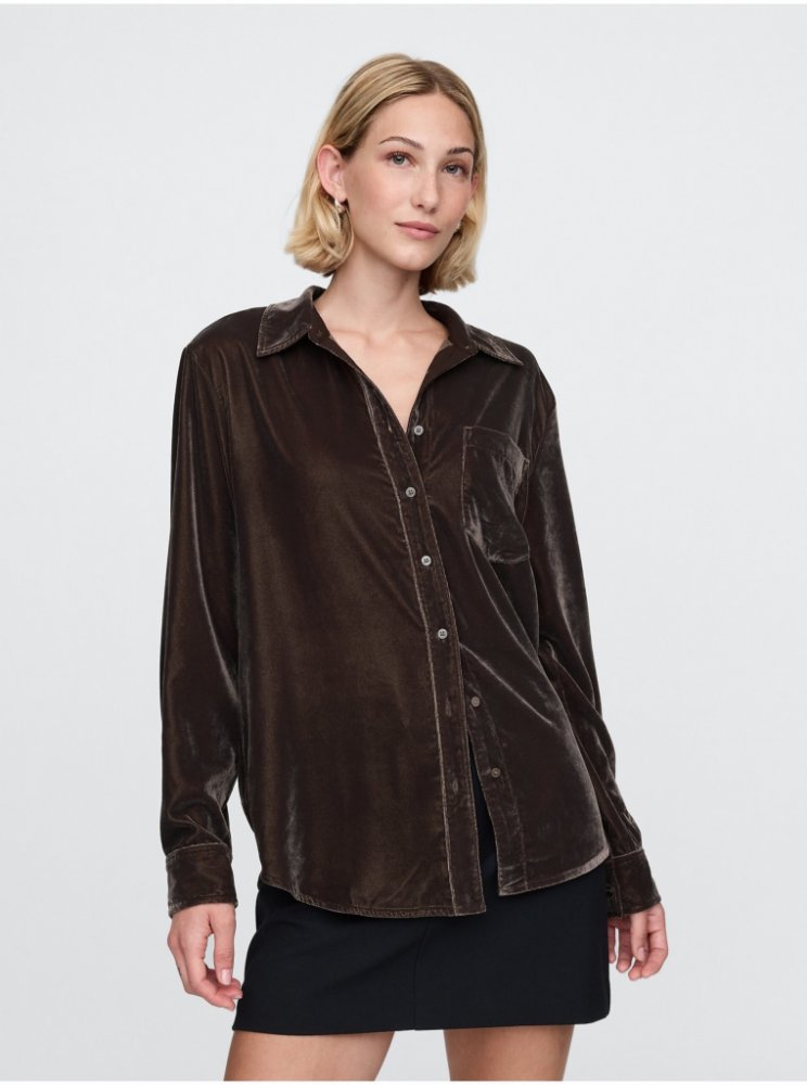 Měkká košile z pružného sametu skvěle doplní váš šatník.S elegantním zapínáním na knoflíky vpředu.Klasický límec s výstřihem do V.Dlouhé rukávy s manžetami na knoflíky.Praktická náprsní kapsa.Košile má uvolněný, rovný střih pro pohodlné nošení. Ideální kousek pro vrstvení nebo nošení samostatně.Modelky s velikostí S (Gap) měří mezi 172–180 cm a mají obvod pasu 60–66 cm a boky 84–97 cm.Modelky s ve...