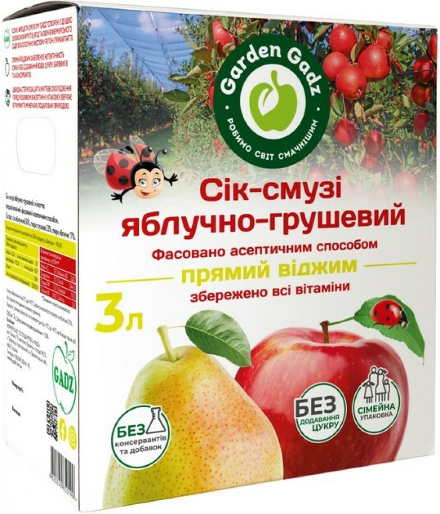 Šťávy Garden Gadz jsou vyráběny s láskou z vlastního ovoce, bobulí a zeleniny z farmářské zahrady v ekologicky čistém regionu Karpat, aby vám přinesly užitek a přírodní chuť. Přímé lisování zajišťuje přirozenost bez přidání vody, cukru a barviv. Rychlá sterilizace do 94 °C a okamžité ochlazení před plněním do aseptického obalu na 32–38 °C uchovává všechny vitamíny a minerály darované samotnou přírodou, které se plně vstřebávají v organismu.