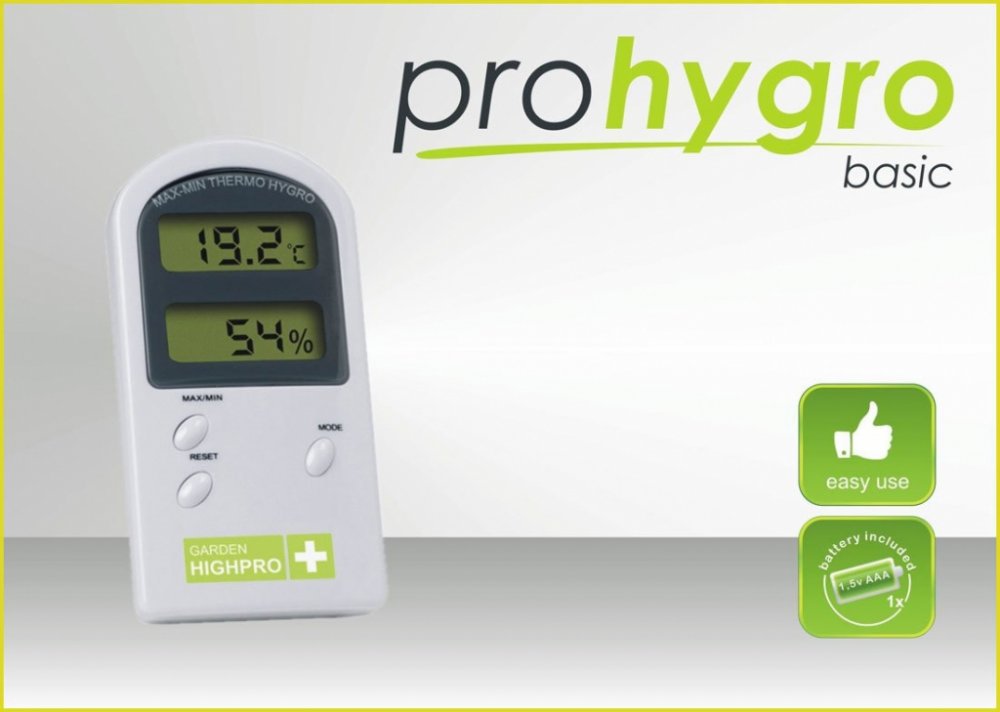 Digitální Thermo hygro metr BASIC bez sondy je určen indoor pěstitelům, kteří dbají na detaily. Přístroj umožňuje přepínání mezi kontinentálními a angloamerickými jednotkami. Rozsah měřených teplot 0°-50° (32°-122° F) a snímané vlhkosti 25%-90%. K provozu stačí jedna 1,5 Voltová AAA baterie, která je součástí balení.
