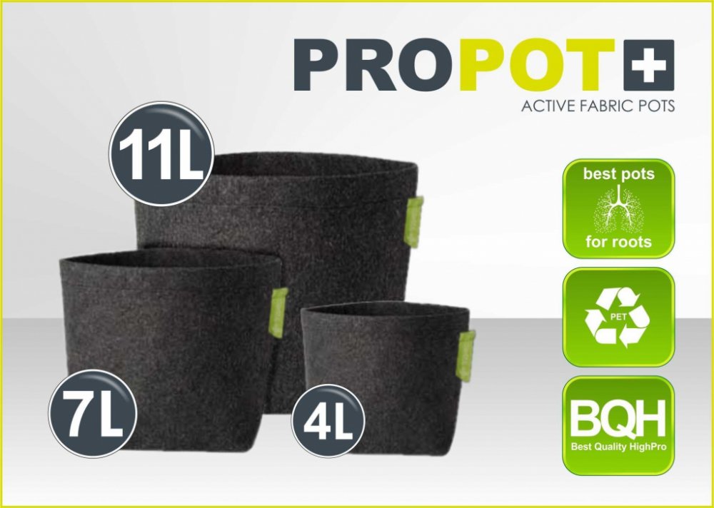 Černý textilní květináč PRO POT 11 l je narozdíl od plastové varianty přívětivější k životnímu prostředí.