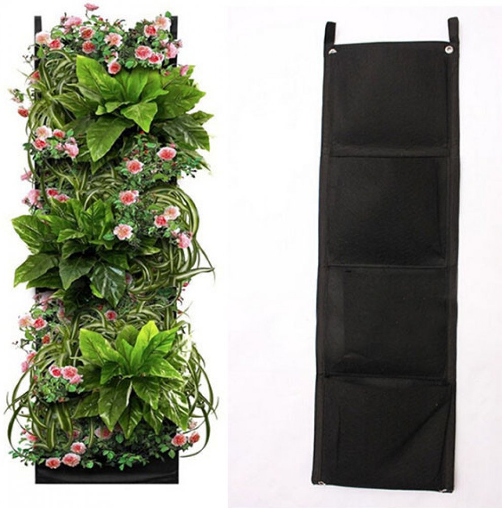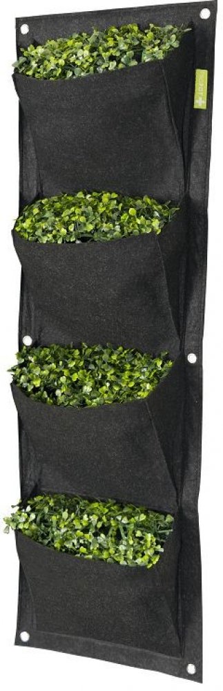 Textilní květináč se 4 kapsami pro nástěnné pěstování v indoor i outdoor podmínkách. Skvělé a stylové řešení pro ty, kteří nemají na pěstování dost místa nebo si chtějí oživit stěny bytu obrazem z rostlin.