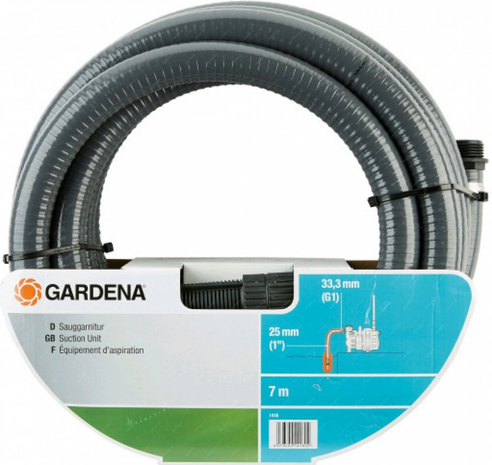 Kompletní, vyztužená spirálová hadice odolná proti podtlaku, připravená pro připojení k čerpadlu. Se sacím filtrem pro ochranu čerpadla proti poškození nečistotami, a se zpětnou klapkou pro kratší časy opětovného nasávání. Hadice má délku 7 m, průměr 25 mm (1") a je vhodná pro čerpadla s vnějším závitem 33,3 mm (G 1).
