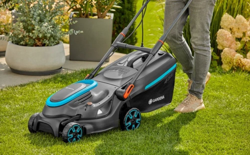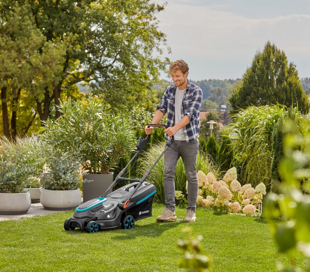 Gardena 1800 W 37 cm 83 dB plastové 14.8 kg bez pojezdu elektrické rotační 45 l 500 m2 elektromotor 3500 ot/min 65 mm 1
