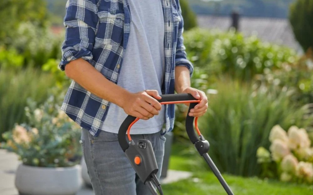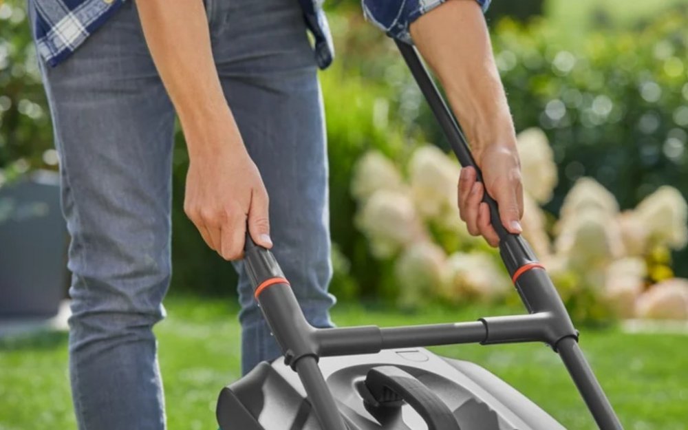 Jakmile je práce hotová, můžete využít praktickou funkci skládání rukojeti a uskladnit sekačku GARDENA PowerMax 1800/37 G2 prostorově úsporným způsobem.