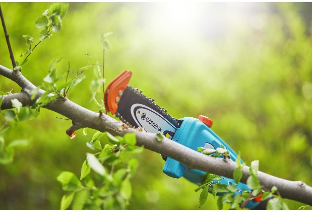 • I když používáte žebřík, máte často špatný nebo žádný přístup k větvím vysoko v korunách stromů. Prořezávání je ale nutné i ve velkých výškách. Nyní již nemusíte na stromy šplhat: s akumulátorovou vyvětvovací pilkou GARDENA TCS 20/18V P4A můžete pracovat bezpečně ze země.