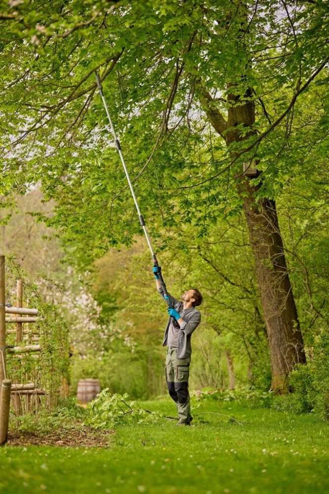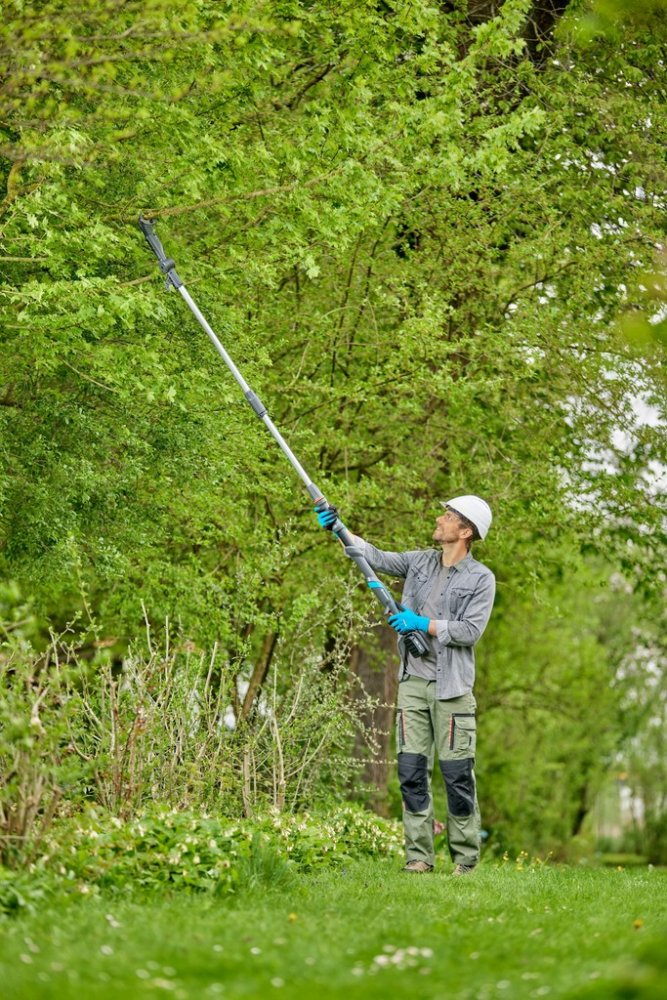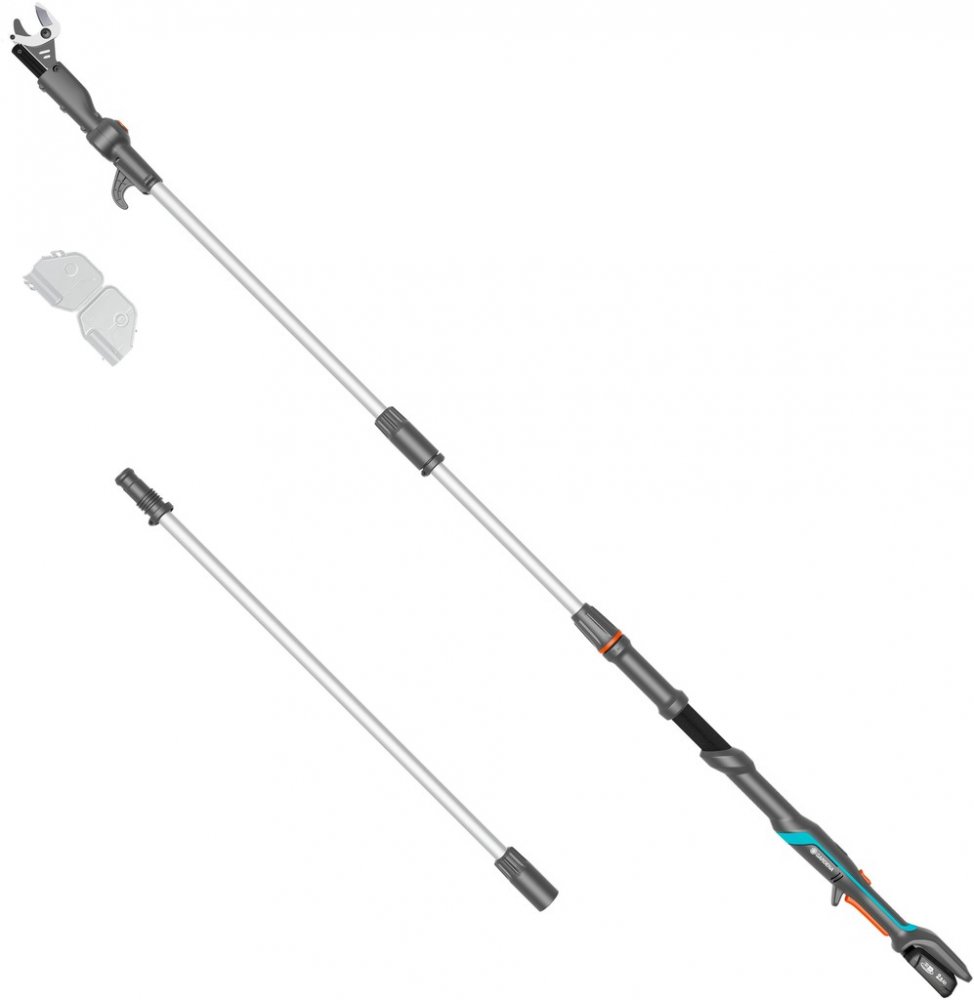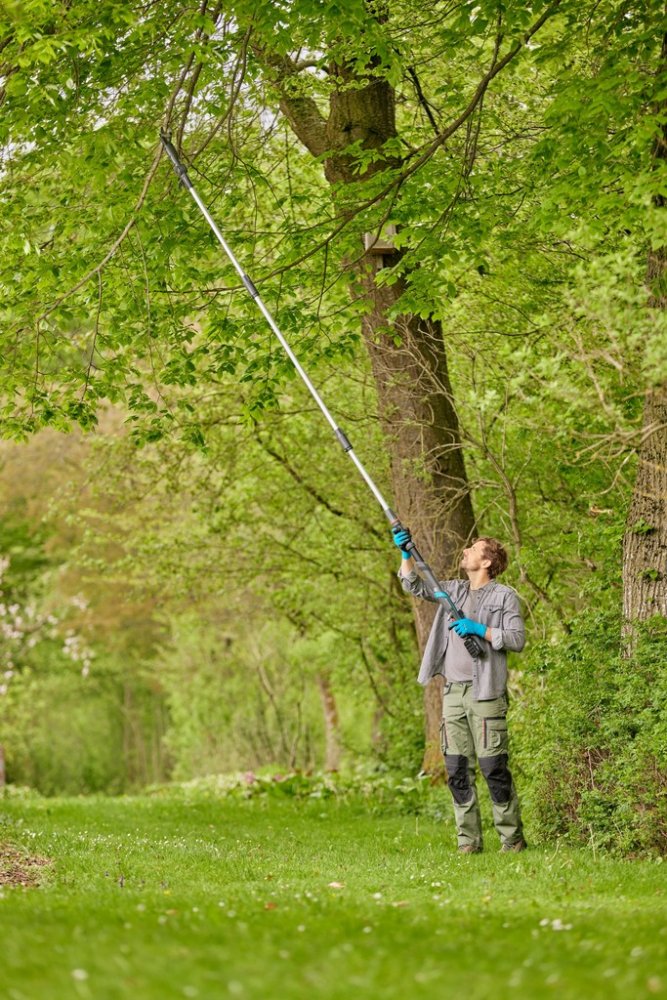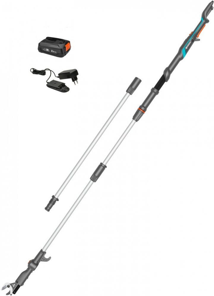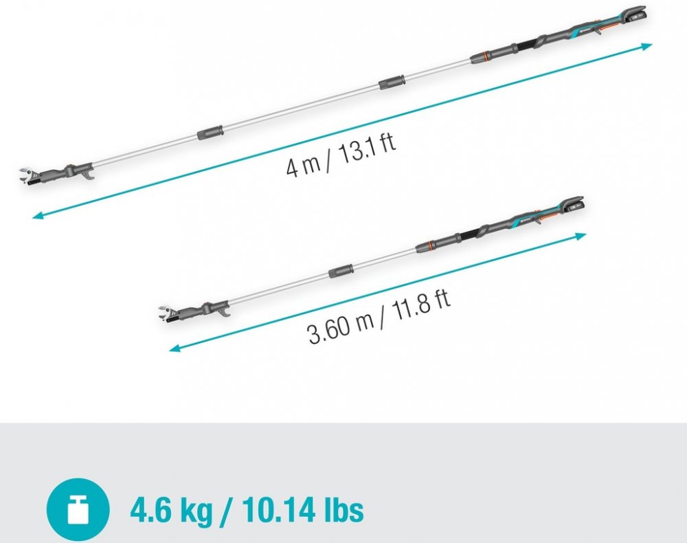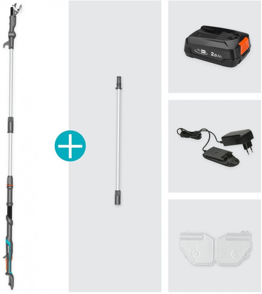 Akumulátorové teleskopické nůžky na větve HighCut 360/18V P4A připravená k okamžitému použití značky GARDENA vám pomohou snadno prořezávat větve ze země ve velmi velkých výškách. Díky integrované prodlužovací trubce mají nůžky na větve až 3,6 metru, díky čemuž můžete při prořezávání dosáhnout celkové výšky až 5 metrů. Praktická teleskopická funkce umožňuje pružně se přizpůsobit podmínkám. HighCut můžete pohodlně přepravovat a skládat díky odnímatelné hřídeli. Akumulátor POWER FOR ALL zajišťuje snadné stříhání bez potřeby velkého výkonu. Originální nože GARDENA jsou vyrobeny v Německu z kalené oceli a poskytují čistý hladký střih čerstvého dřeva až do průměru 28 mm. Mají nepřilnavou povrchovou úpravu a jsou přesně broušené, aby se odřezky nelepily na nože. Pomocí otočné a tenké stříhací hlavy můžete řezat jednotlivé větve v 60stupňové poloze. Nakloněná hlava navíc poskytuje dobrý výhled na práci. Pokud se větve zachytí v koruně stromu, můžete je jednoduše stáhnout dolů pomocí stahovacího háku v horní části násady. LED indikátor v ergonomické rukojeti ukazuje stav nabití akumulátoru. Jedno plné nabití akumulátoru vystačí až na 400 střihů. GARDENA akumulátorové teleskopické nůžky na větve HighCut 360/18V P4A jsou dodávány jako sada připravená k okamžitému použití s ??rychlonabíječkou a akumulátorem 18V POWER FOR ALL. ALIANCE POWER FOR ALL je jednou z největších aliancí předních výrobců akumulátorů různých značek, jejíchž akumulátory lze použít v mnoha zařízeních určených pro zahradu a dům. To vám umožní ušetřit peníze a zároveň zůstat flexibilní! Po jednoduché online registraci nabízí GARDENA na akumulátorové teleskopické nůžky na větve tříletou záruku výrobce. Vášeň poháněná GARDENA. JEDEN akumulátor pro všechny úkoly na vaší zahradě.