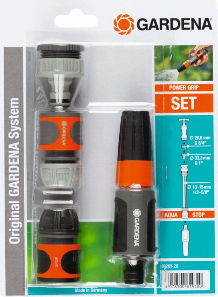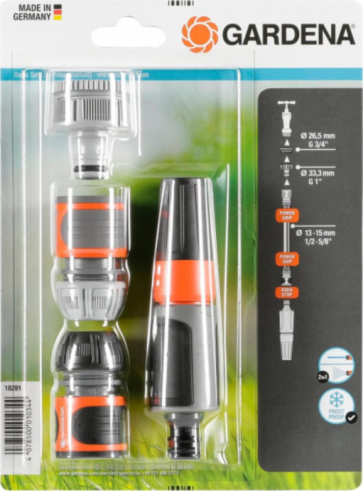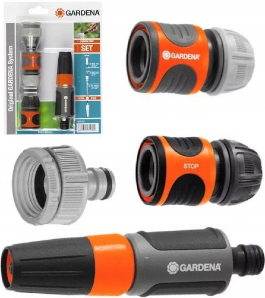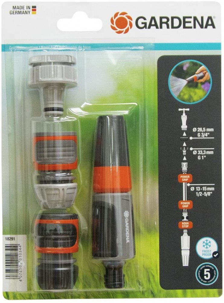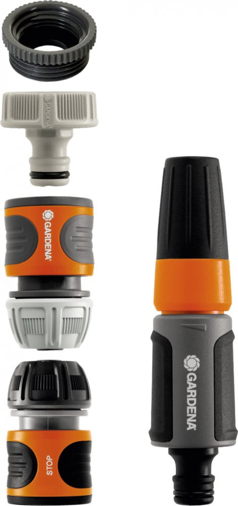 Kompletní sada pro rychlé propojení vodovodního kohoutku s hadicí. GARDENA základní vybavení obsahuje šroubení pro vodovodní kohoutek se závitem s adaptérem (č.v. 18202 a 5305), rychlospojku (č.v. 18215), stopspojku (č.v. 18213) a čisticí postřikovač (č.v. 18300).Všechny Original GARDENA systémové prvky a čisticí postřikovač tak můžete použít díky této kompletní sadě okamžitě. Špičková kvalita výrobku - Kvalitní výrobky GARDENA německé výroby zaručují důvěryhodný výkon, spolehlivost a neustálé inovace. Kompletní startovací sada - Díky základnímu vybavení se šroubením pro vodovodní kohoutek a rychlospojkou pro hadici, lze hadici okamžitě napojit. Original GARDENA System - Díky systémovým výrobkům z řady Original GARDENA System lze velmi snadno a rychle připojit k hadici jakékoliv zavlažovací příslušenství. Všechno se k sobě dokonale hodí od začátku až do konce a skvěle drží. Tmavá - konec hadice - Tmavá stopspojka na konec hadice umožňuje snadnou výměnu příslušenství bez chození k vodovodnímu kohoutku. 5letá záruka zaručuje vysokou kvalitu - *Platí po registraci na gardena.com/registration do 3 měsíců od nákupu. Záruční podmínky na gardena.com/warranty. Funkce on/off (pustit/zastavit) - Průtok vody lze uzavřít.