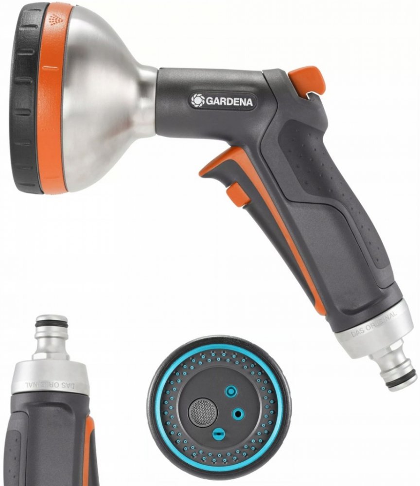 GARDENA prémiový multifunkční sprej Pistole je model s pevnou kovovou konstrukcí.